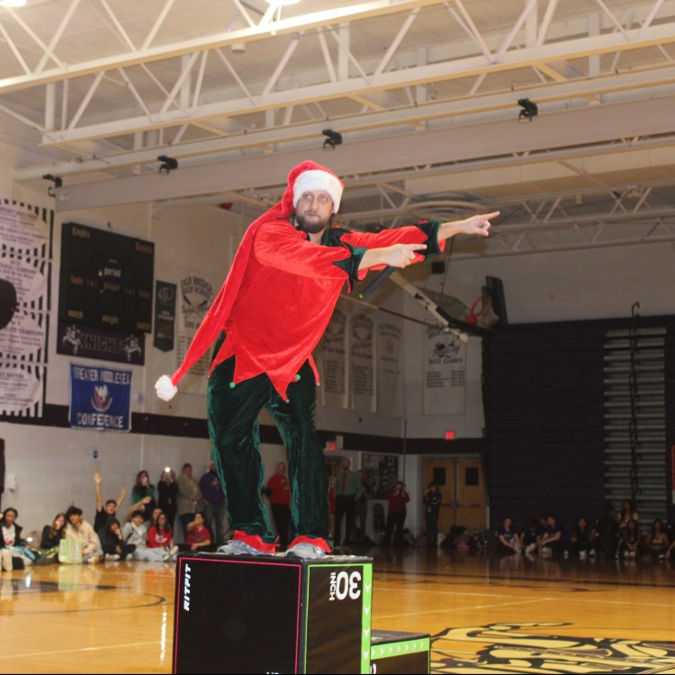 Teachers participated in their annual performance, dancing to “New Christmas Hip Hop Song” by Big Boys. The group rehearsed during lunch periods, and Student Assistance Counselor Renee Galdieri choreographed the dance. “The dance was slightly modified from what was found on YouTube, which Ms. Galdieri was kind enough to share with us,” said Kristen Celentano.