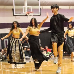 The Indian Dance Team performed a routine with the songs “Akhiyaan Gulaab” by Mitraz, “Naatu Naatu” from the movie RRR, “Mera Wala Dance x Blockbuster mix” by DJ Amsal, and more. Senior Soham Agrawal and junior Anya Kaul choreographed their group’s performance. “Soham and I looked for certain songs we wanted and found the parts of each song,” Kaul added, “We then looked up some choreos for inspiration and we met up a couple of times before meeting with the team and made the dances to teach everyone.”