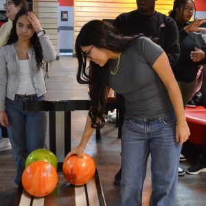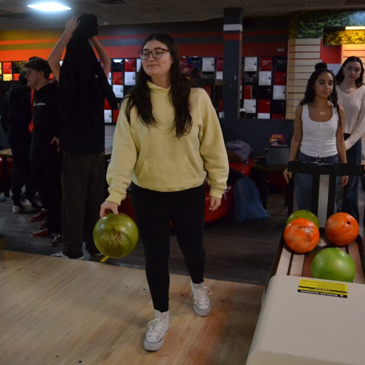 Students first got to pick groups and a lane to bowl in. “My favorite part of Bowling and Bagels was getting to bowl with friends, and even though I wasn’t very good at it, I still had a very fun time!” said Giuseppina Saraceni.
