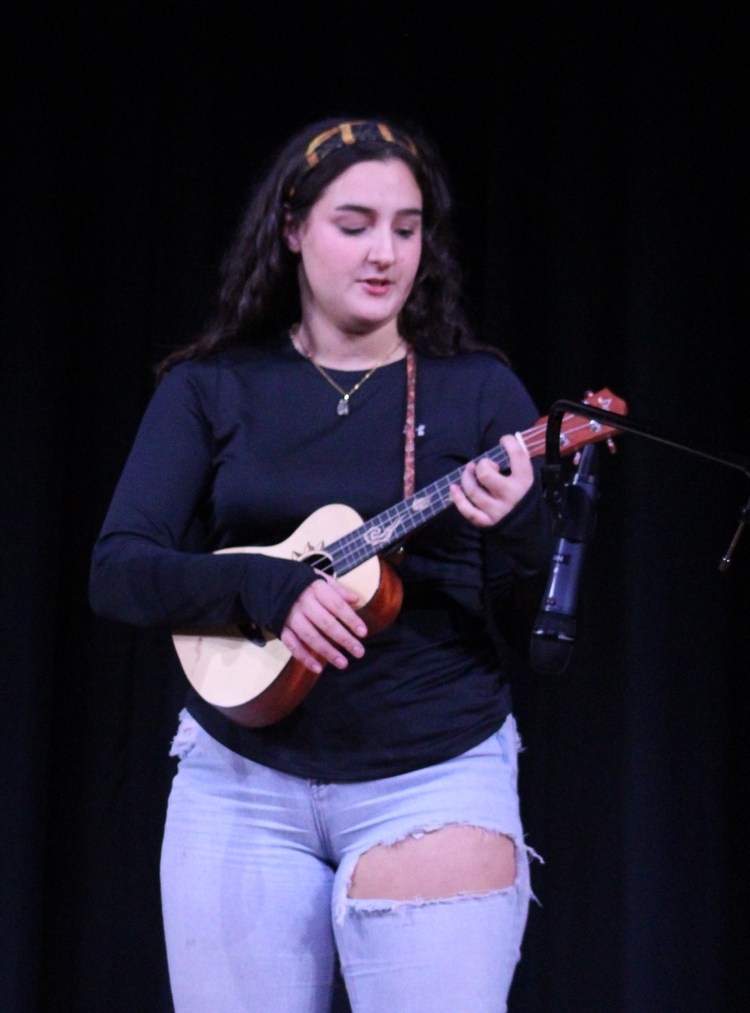 Camryn Smith strums her ukulele as she sings “Stick Season” by Noah Kahan.