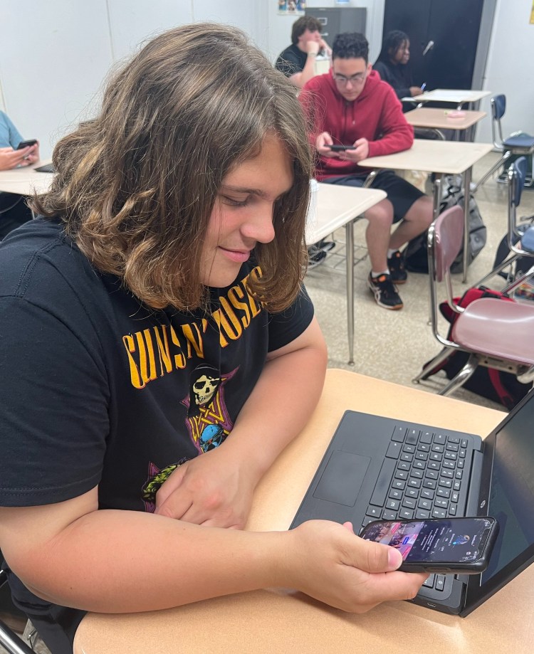 Jacob Wands checks his TikTok profile after finishing his classwork.